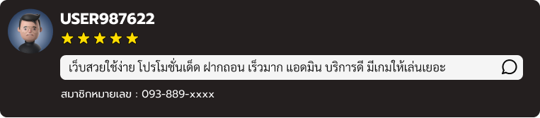 นักเดิมพันสามารถทำธุรกรรมได้ด้วยตัวเองในไม่กี่วินาที รองรับทั้งธนาคารชั้นนำในไทยและระบบ True Walletปลอดภัยด้วยเทคโนโลยีทันสมัย